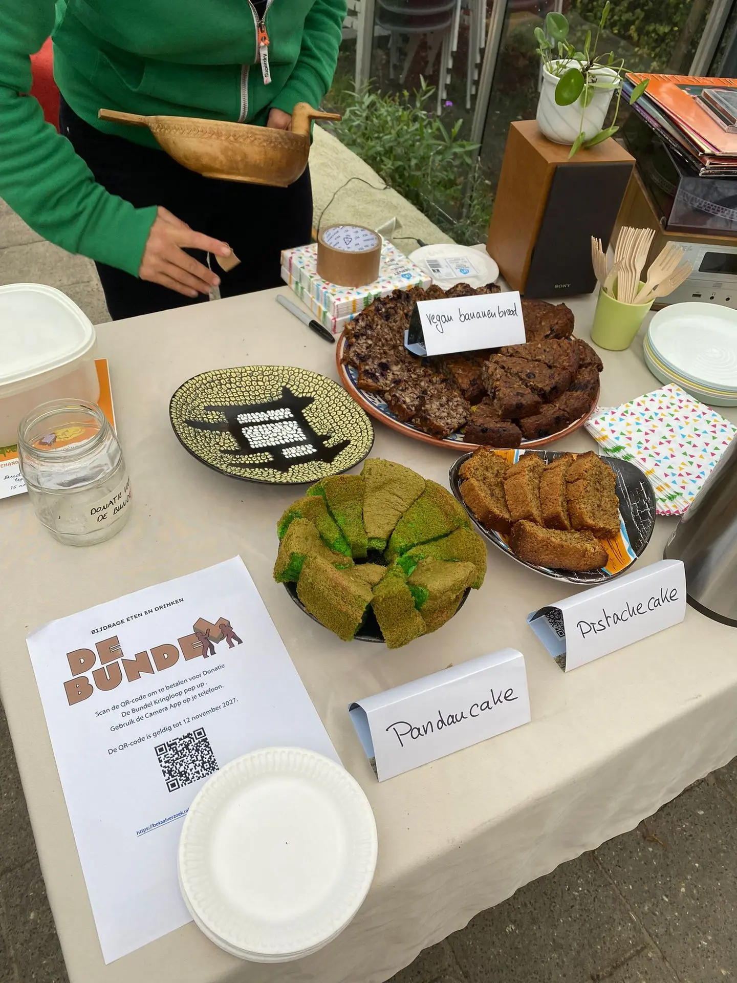 Gisteren veranderde de kas van De Bundel in een warme pop-up vol truien, jassen en de gezellige Muna sfeer. Buurtgenoten kwamen langs en snuffelden tussen de rekken kleding. Er was live muziek, huisgemaakte taart en koffie van De Bundel en gezelligheid. Het was een heerlijke dag en zolang er nog geen vaste locatie is, hopen we over een tijdje weer een pop-up te organiseren.